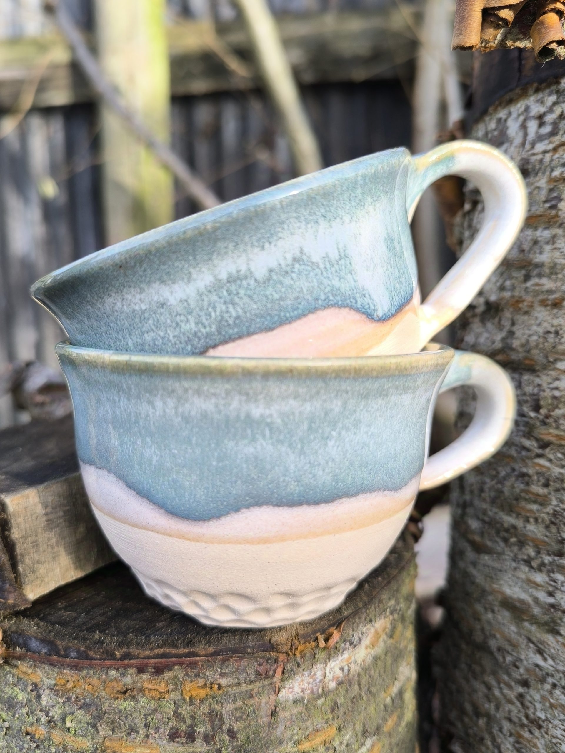 The light green glaze, mixed with white, creates a smooth, flowing effect that’s simple yet striking. The contrast between the glaze and raw clay base highlights the craftsmanship in every piece I make.
