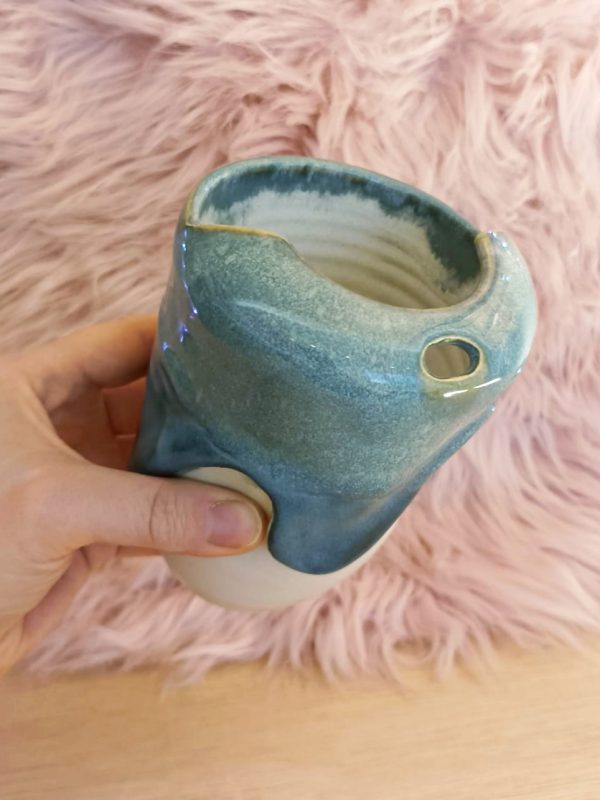 This handmade tea cup is crafted with care to make your morning tea, coffee, or latte even more enjoyable. Standing 7cm tall and 10cm wide at the rim, it’s the perfect size for a generous 250ml serving of your favourite hot drink. The raw clay base adds a pleasant texture, while the comfortable handle makes it easy to hold – like a warm hug with every sip.